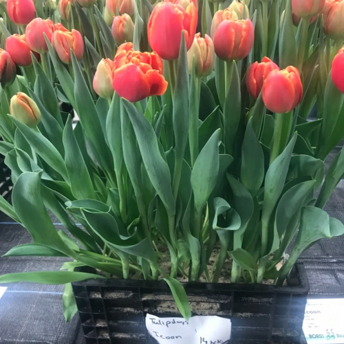 Крупноцветковый, махровый, раннецветущий Тюльпан Айкон Привлекает цветоводов сочным окрасом и превосходным ароматом. • Растение высотой 25 – 35 см, для среза вытягивают до 40 – 45 см. • Формирует компактные кусты, с красивой листвой. • Яркие оранжевые лепестки, с красными и зеленоватыми мазками, образуют пионовидные бутоны. • Диаметр цветка 8 – 10 см. • Отличается ранним и продолжительным цветением. — Широко используют для озеленения аллей, клумб, — Выращивают как горшечную культуру. — Подходит для зимне-весенней выгонки